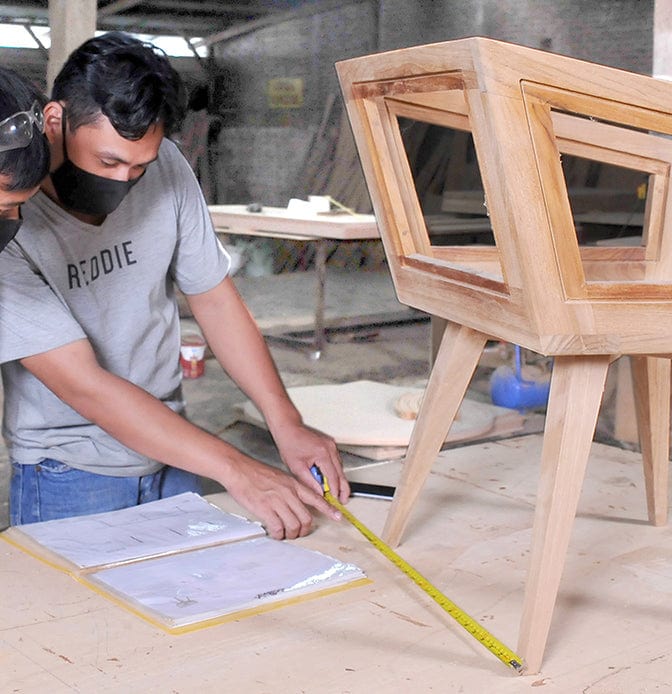 We have a team of over 60 craftsmen that are third-generation carpenters who have been immersed in woodworking all their lives. When you take a stroll down one of our factory community streets you will see most homes have some kind of craft being made. From ladies weaving rattan in their front yard, to small carpentry carving shops through to leather working studios. The town is built on creating beautiful objects by hand.