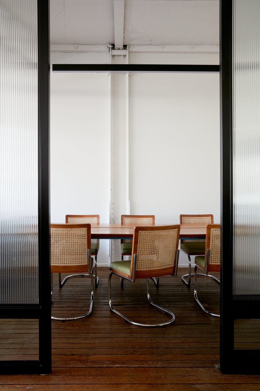 With sustainability always in mind, their original Willy table was repurposed as the boardroom table and paired with Rosie rattan chairs.