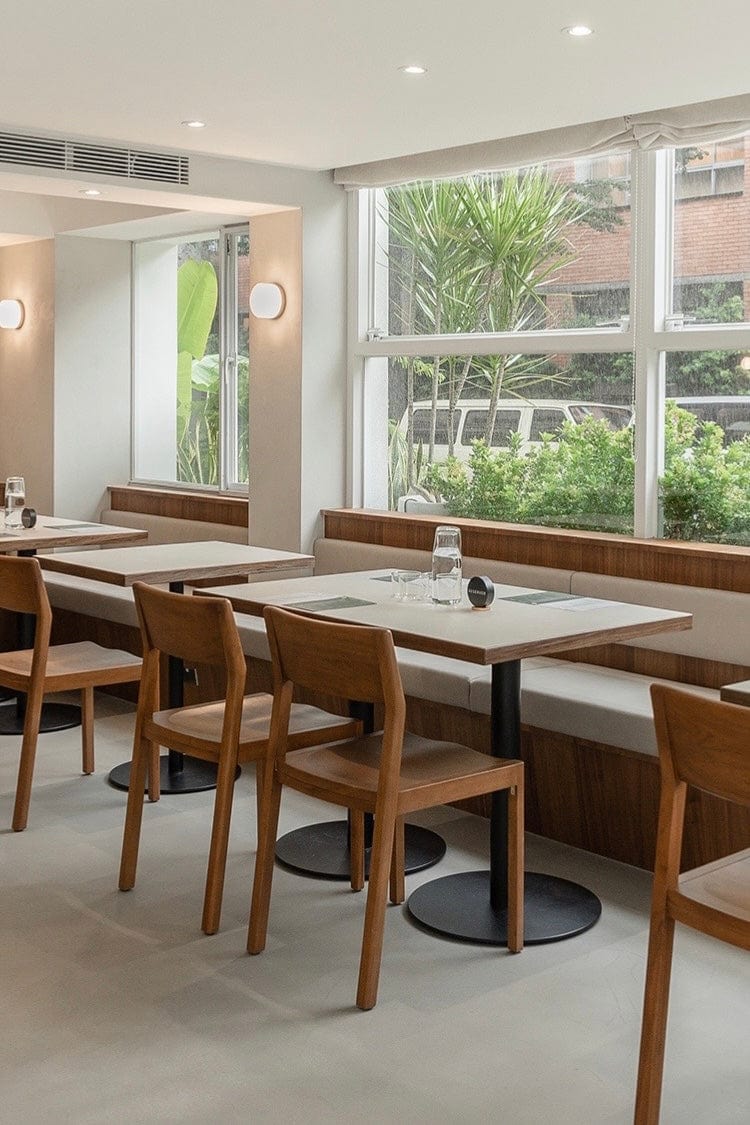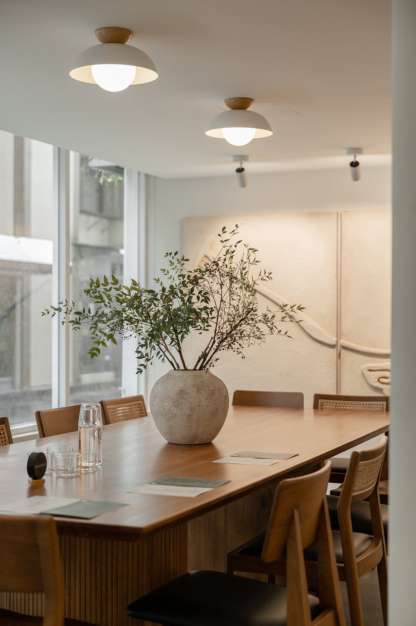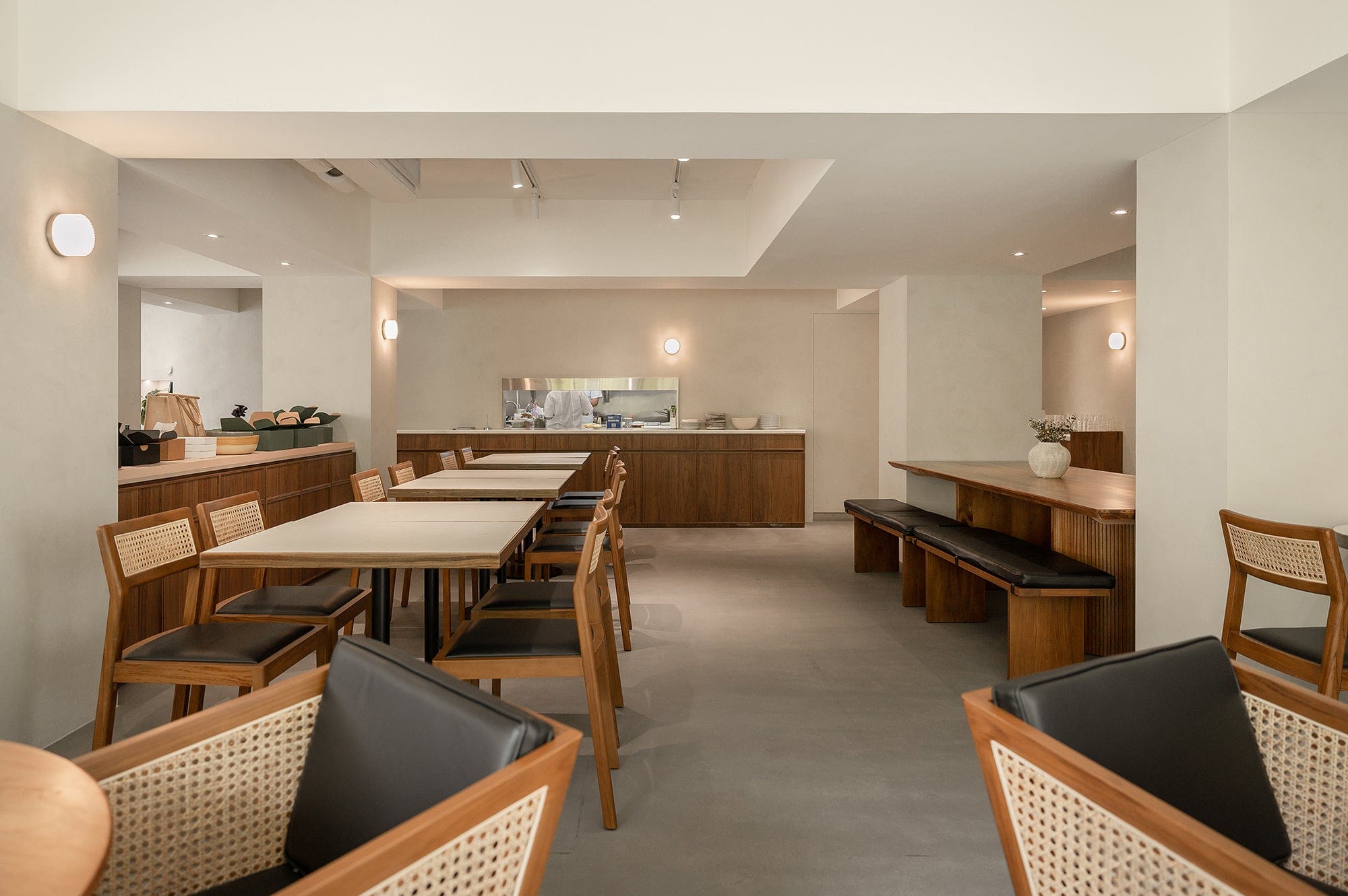We started planning for our second location in Taipei, the main city, three years ago. Although everything was delayed due to COVID, we finally opened our doors in Taipei in late 2022. We saw an opportunity to create a space that had elements of both modern dining aesthetics and the vibes of a cosy home. We wanted a minimal space paired with neutral colours and furniture in warm tones so that it would be appealing to everyone in the community. The piece by Taiwanese-Australian artist Angie Pai and photography artwork by Australian photographer Kara Rosenlund compliment each other in a calming way that reminds us of down under. As we also have their pieces in our collection at home in Brisbane, it certainly feels like we're welcoming our customers into our Aussie home. While searching for the furniture, we couldn't look past Reddie. One thing we learnt from our first cafe is that sturdy, well-built furniture is definitely worth the investment. Seats that please the eye and make the customers feel comfortable sets the mood for an enjoyable dining experience. I couldn't be happier with the quality of every chair, especially the handwoven rattan. Such handicraft is super rare these days.