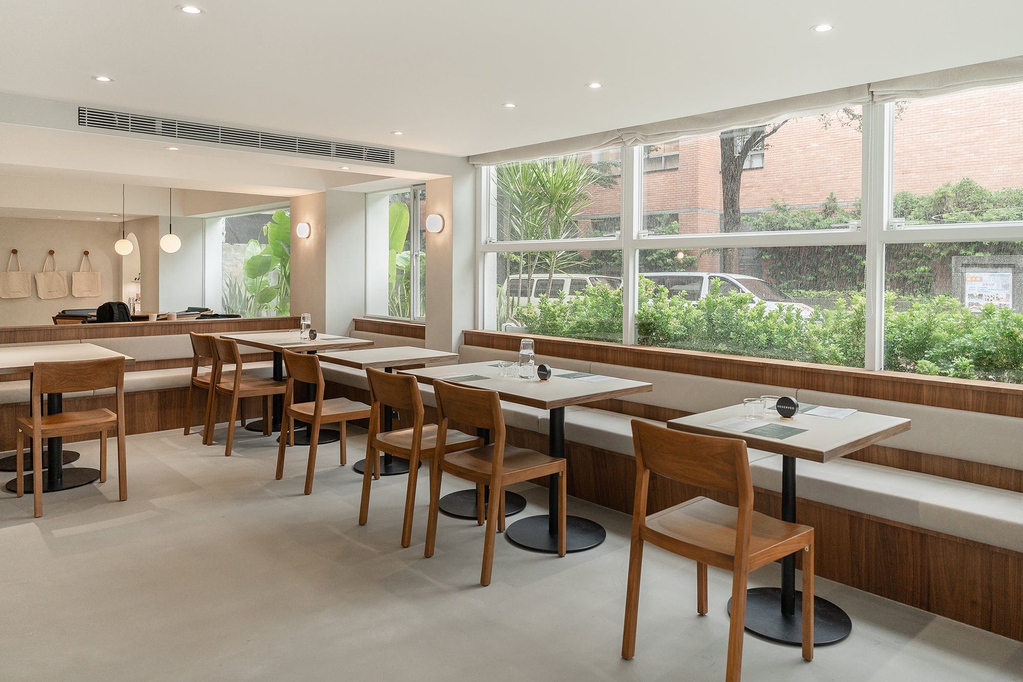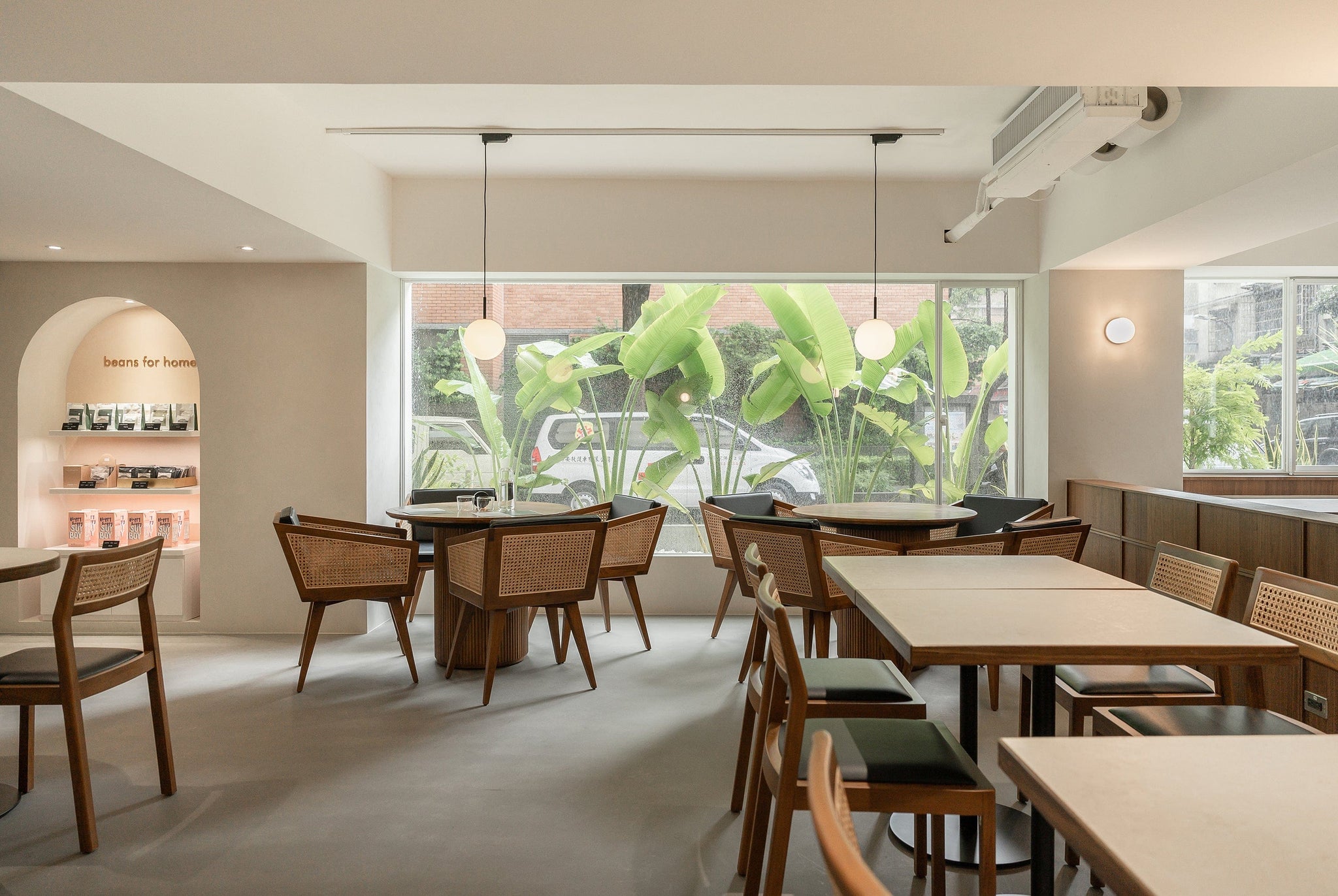 Ivette is an Australian-style cafe in central Taiwan. It features a relaxing palette of solid wood and eggshell tones with glimpses of purposely positioned windows to gardens.