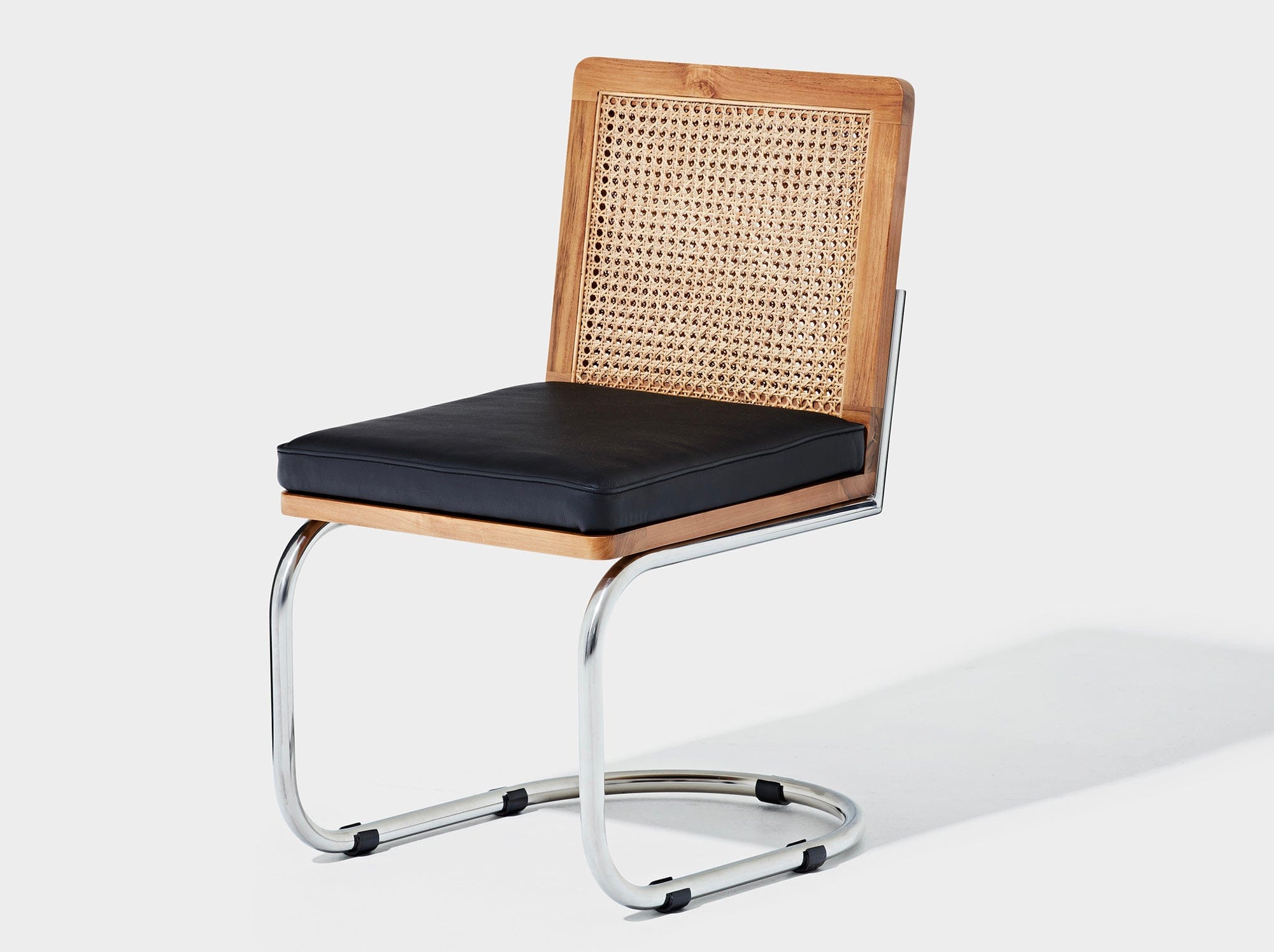 With the popularity of our Vinny Jay Rattan Club chair, we needed to compliment him with a cantilevered version. Rosie the Rattan Cantilevered Chair features a double sided woven rattan back and a fabric cushion seat that is supported by a stainless steel cantilevered base.