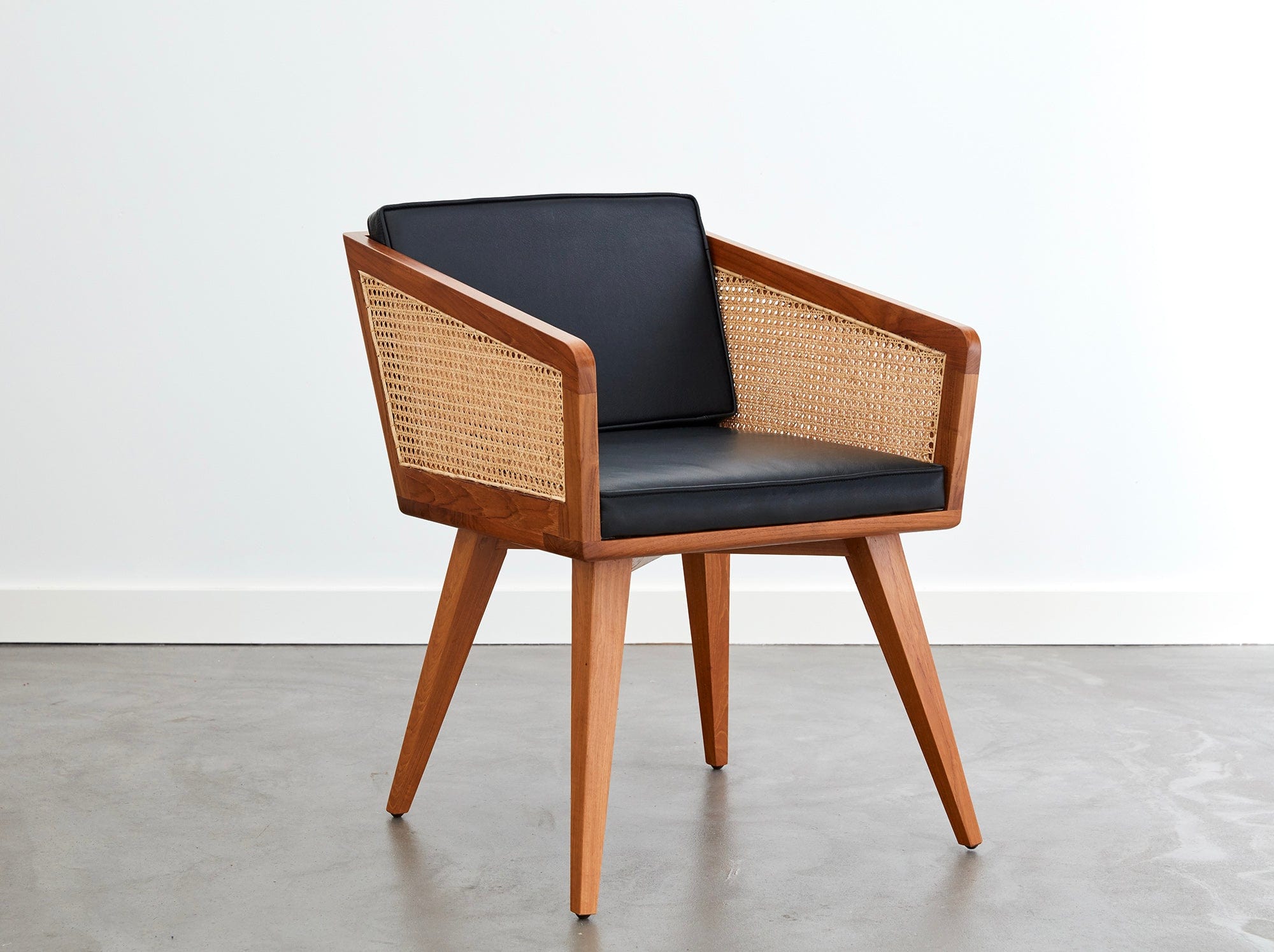Our ever so popular Vinny the Jay Rattan Chair is a beautifully handcrafted rattan and solid teak dining chair, with gorgeous angles structuring his arms and legs. He features 2 layers of rattan on all sides and is cushioned with Italian leather, with a removable back cushion.