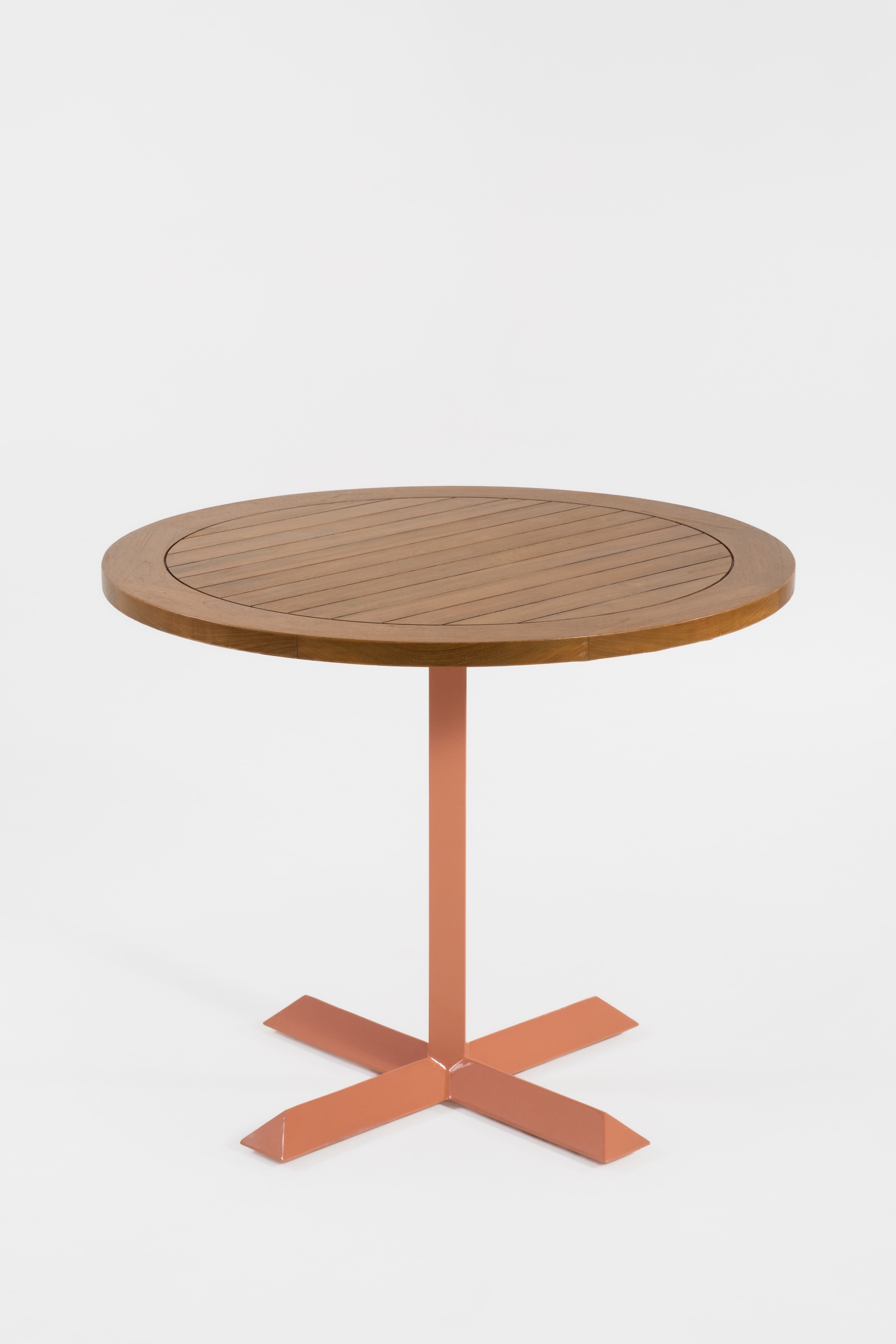 I'm Andi, the outdoor table that brings both style and function to your space. With my slimline design, sleek pedestal stem, and distinctive triangular extruded base, I stand out in any outdoor setting. My tabletop is crafted from premium reclaimed solid teak, offering both durability and beauty. Lightweight and easy to move, I’m also sturdy enough to comfortably support your dining experience. Whether lined up in a row or seating four people comfortably, I’m perfect for those outdoor gathering spaces where you want both elegance and practicality.