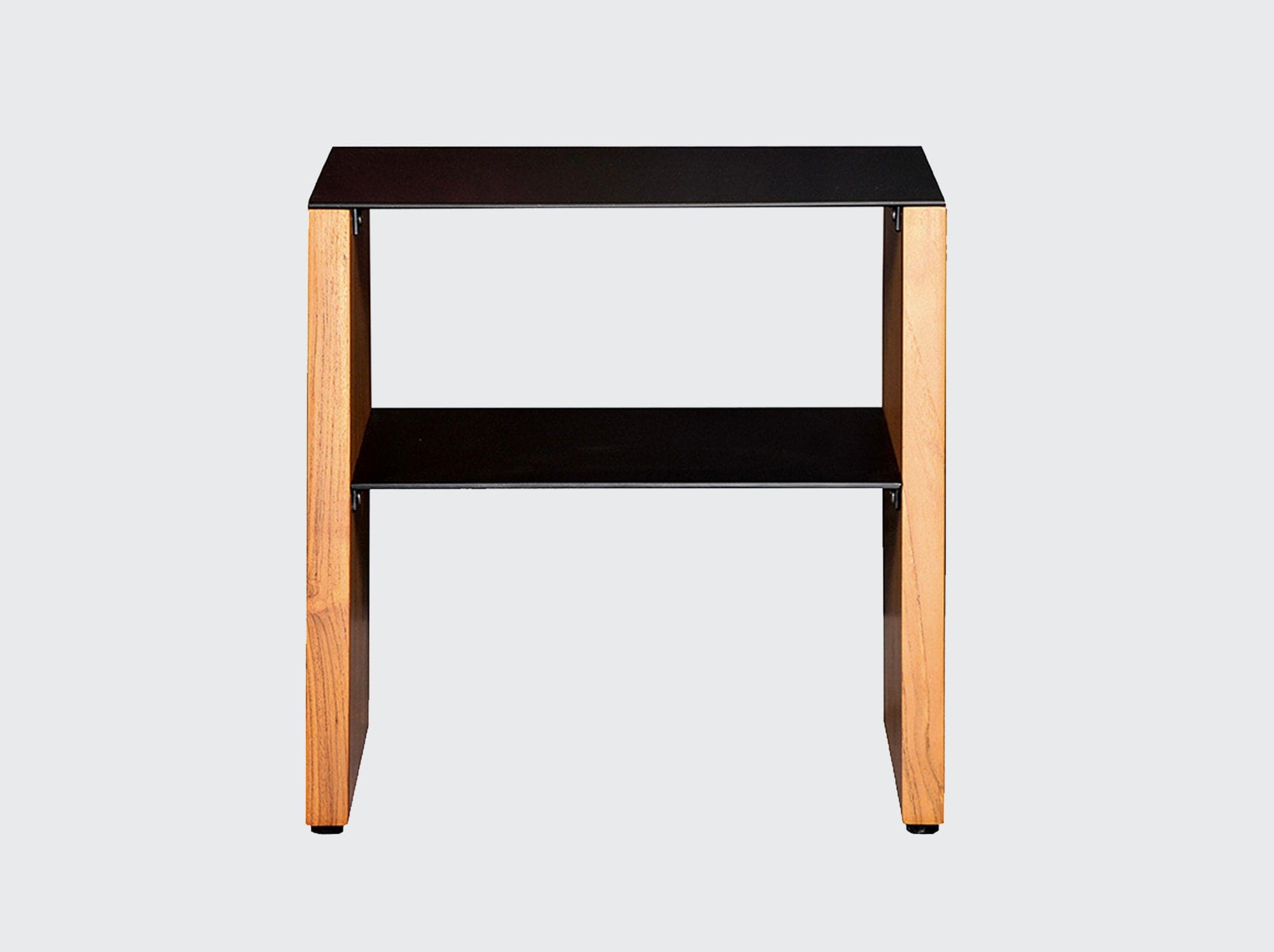 I’m Andi, and I like things crisp, clean, and in line. Made out of thick, solid steel sheets suspended by a solid reclaimed teak frame, I’ve got a sturdy shelf that can hold books and other essentials (or non-essentials—who am I to judge?).