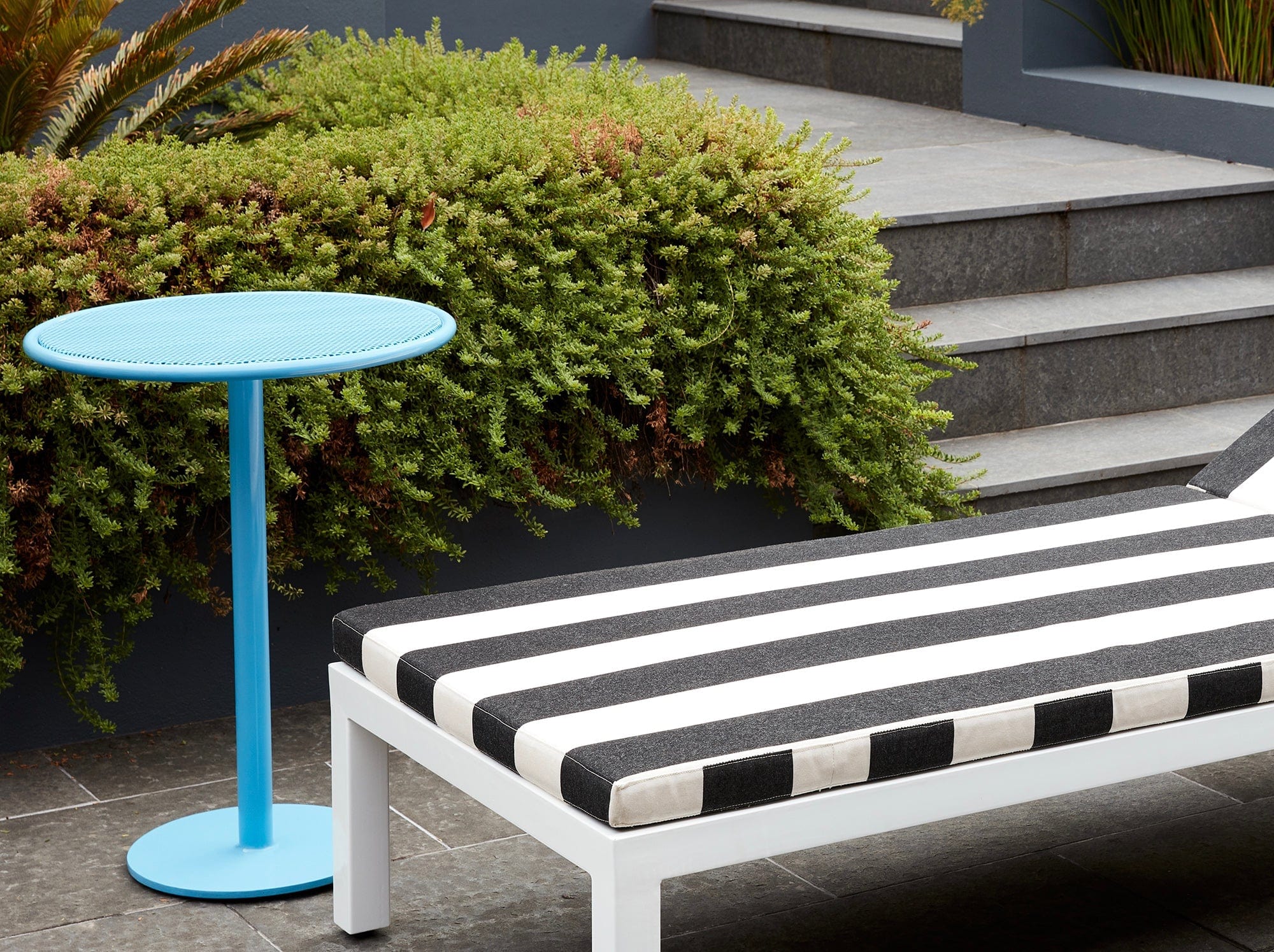 I’m the Bob Outdoor Pedestal Coffee Table, where simplicity meets industrial edge. I might look small and simple, but my powder-coated stainless steel frame and perforated metal top bring an exciting industrial look to your outdoor space. My clean, sleek design adds a whole lot of personality to any area, making me the perfect choice for those looking to make a statement.