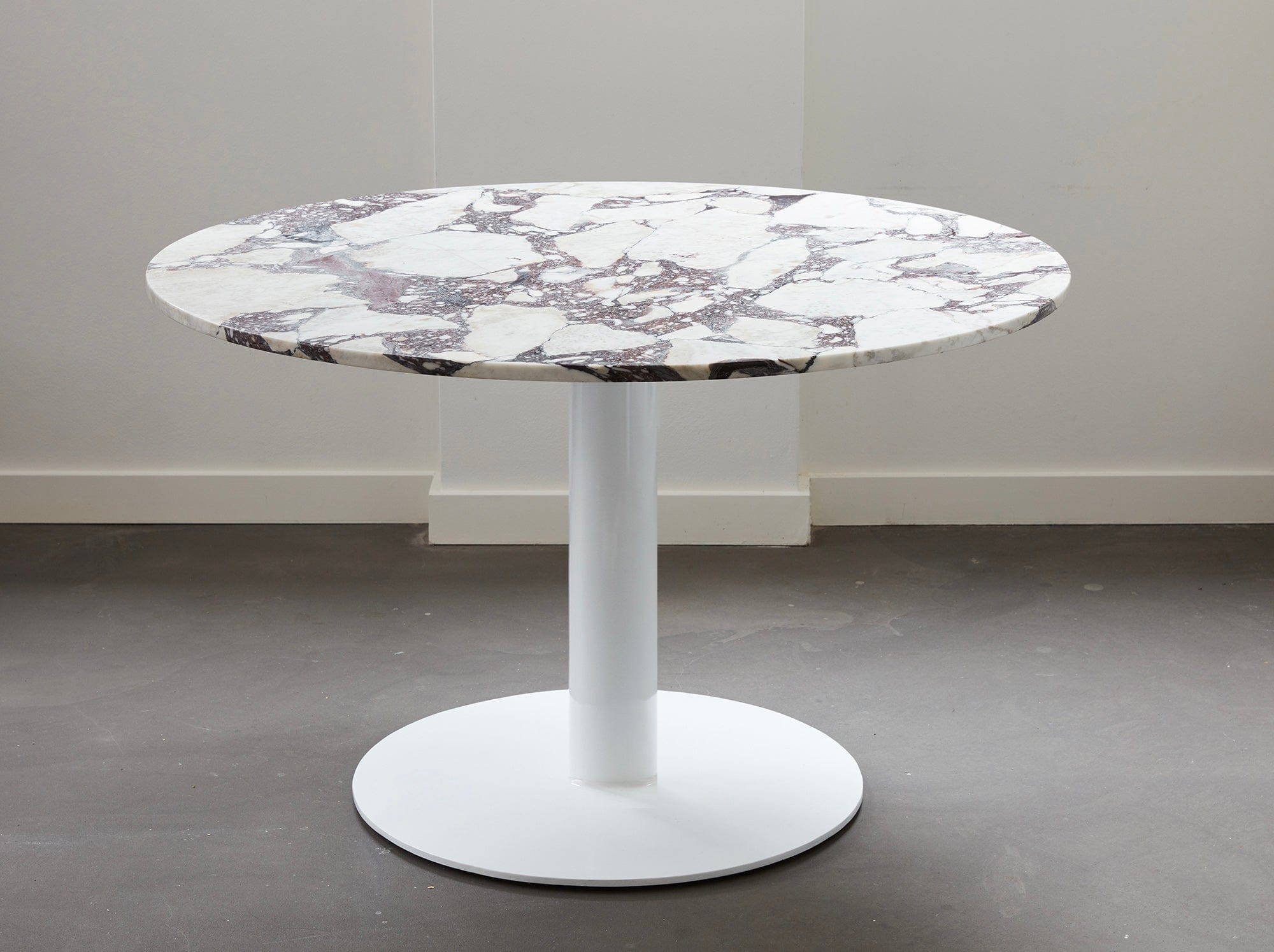 reddie-raw round 100dia x 75H *cm / Stone~White Veined Marble / Metal~Black Bob Pedestal Table - Marble