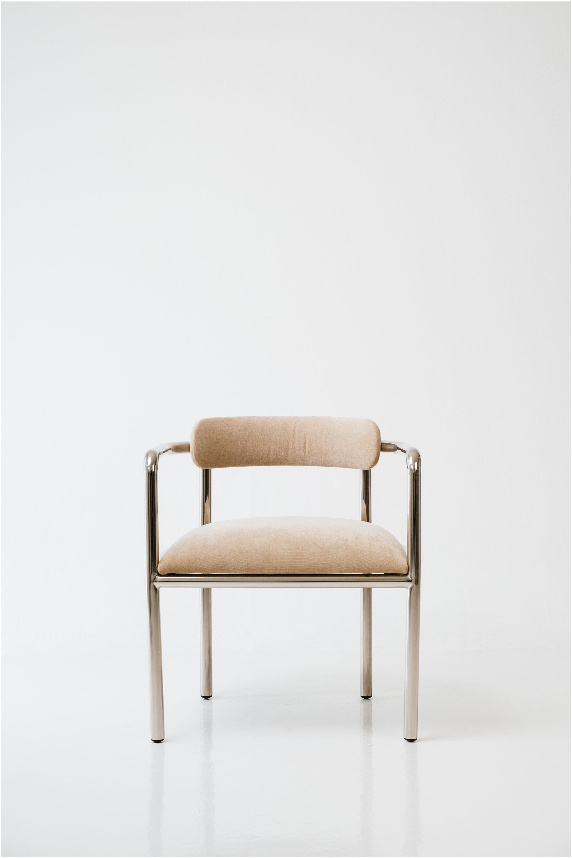 I'm Cinta (Chin-ta), and just like my name suggests, I’m here to bring you love. My elegant curves and comfortable seat are perfectly designed for both dining and lounging. Made from polished stainless steel with a sleek, slightly mirrored finish, I’ll even let you catch your reflection. Bet you cinta that!