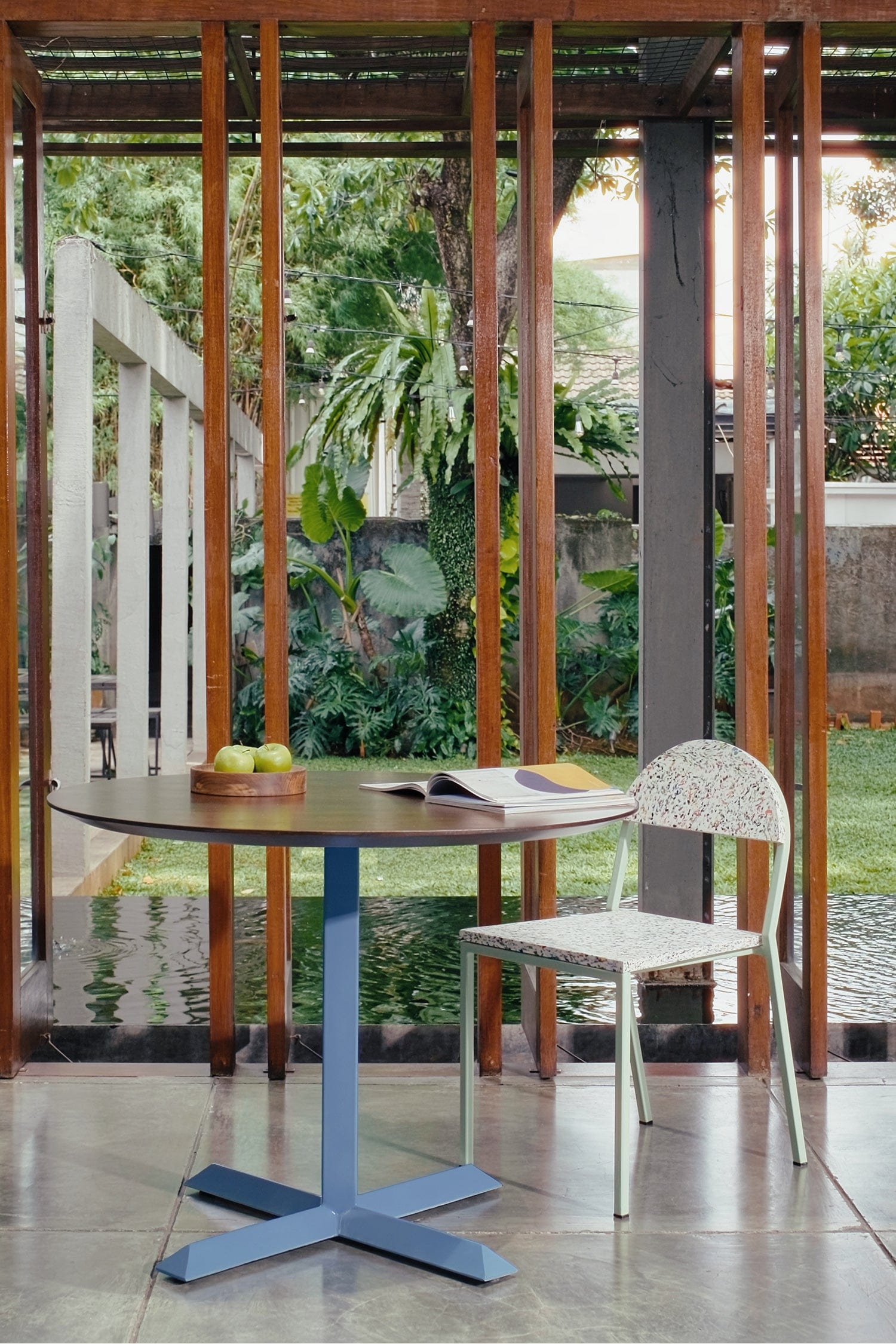I'm Andi, your outdoor dining solution. With my sleek pedestal base and triangular extruded design, I bring modern flair to any outdoor space. My premium reclaimed solid teak top is built to last and can comfortably seat four people. Lightweight and sturdy, I’m perfect for your outdoor gatherings, whether you want me in a row or as a standalone centerpiece.