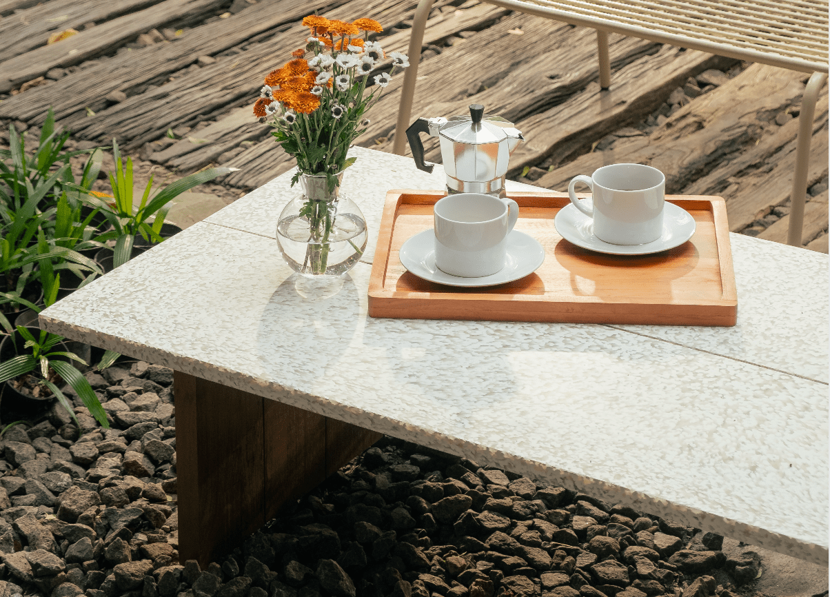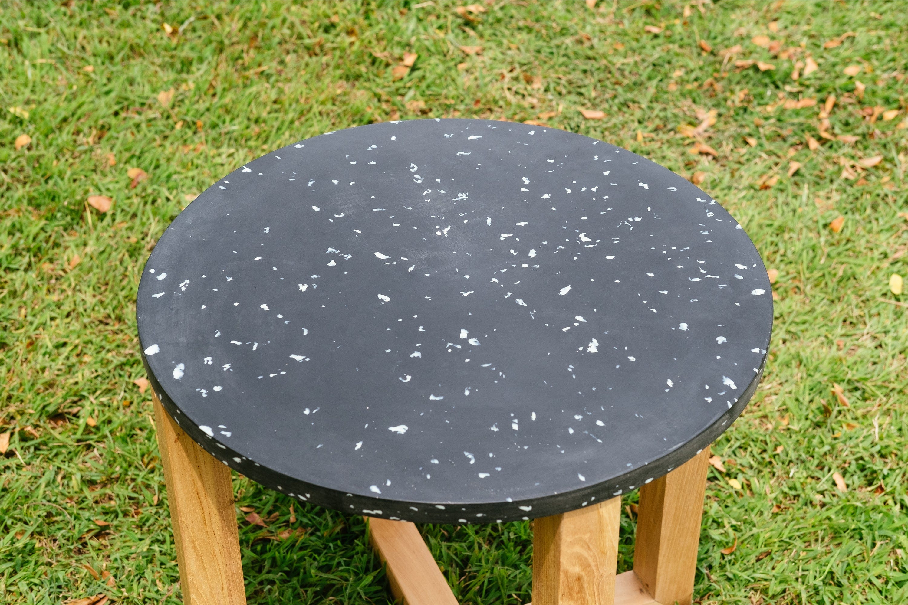 Our beautiful collection of recycled plastic is a durable, terrazzo-like material made from PP (Polypropylene) and HDPE (High Density Polyethylene) post-consumer plastic. The plastic is primarily from discarded/used bottle caps, as well as cups, hangers and buckets (sourced from landfil and ocean waste). It is picked, cleaned and sorted to match our colour-ways, resulting in an array of design-led colours from playful pop culture to classic hues. It is then moulded to panels in various sizes and thickness, and tested for structural integrity.
