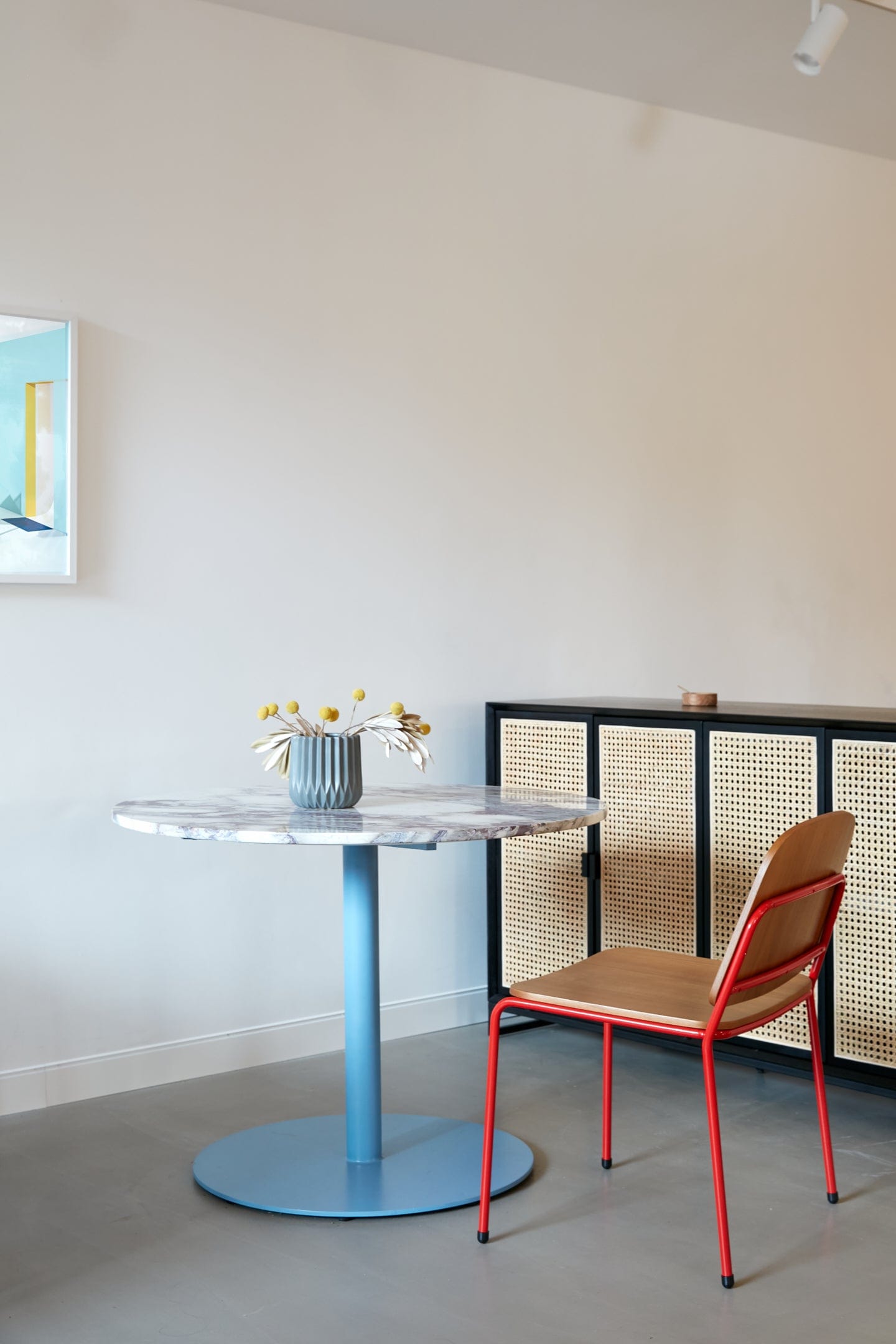 reddie-raw dining chair 49W x 49D x 80H *cm / Wood Veneer~Teak / Metal~Blue Kami Stackable Dining Chair