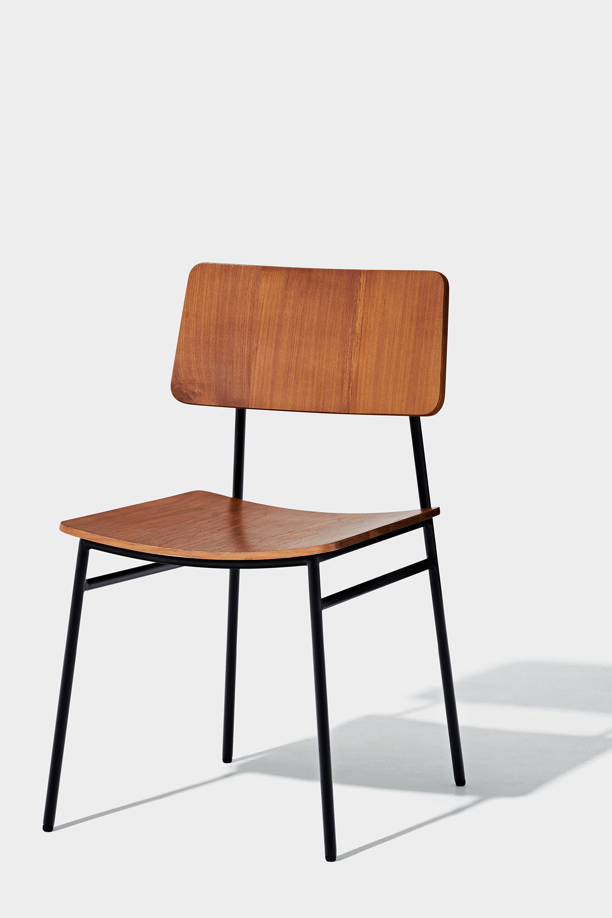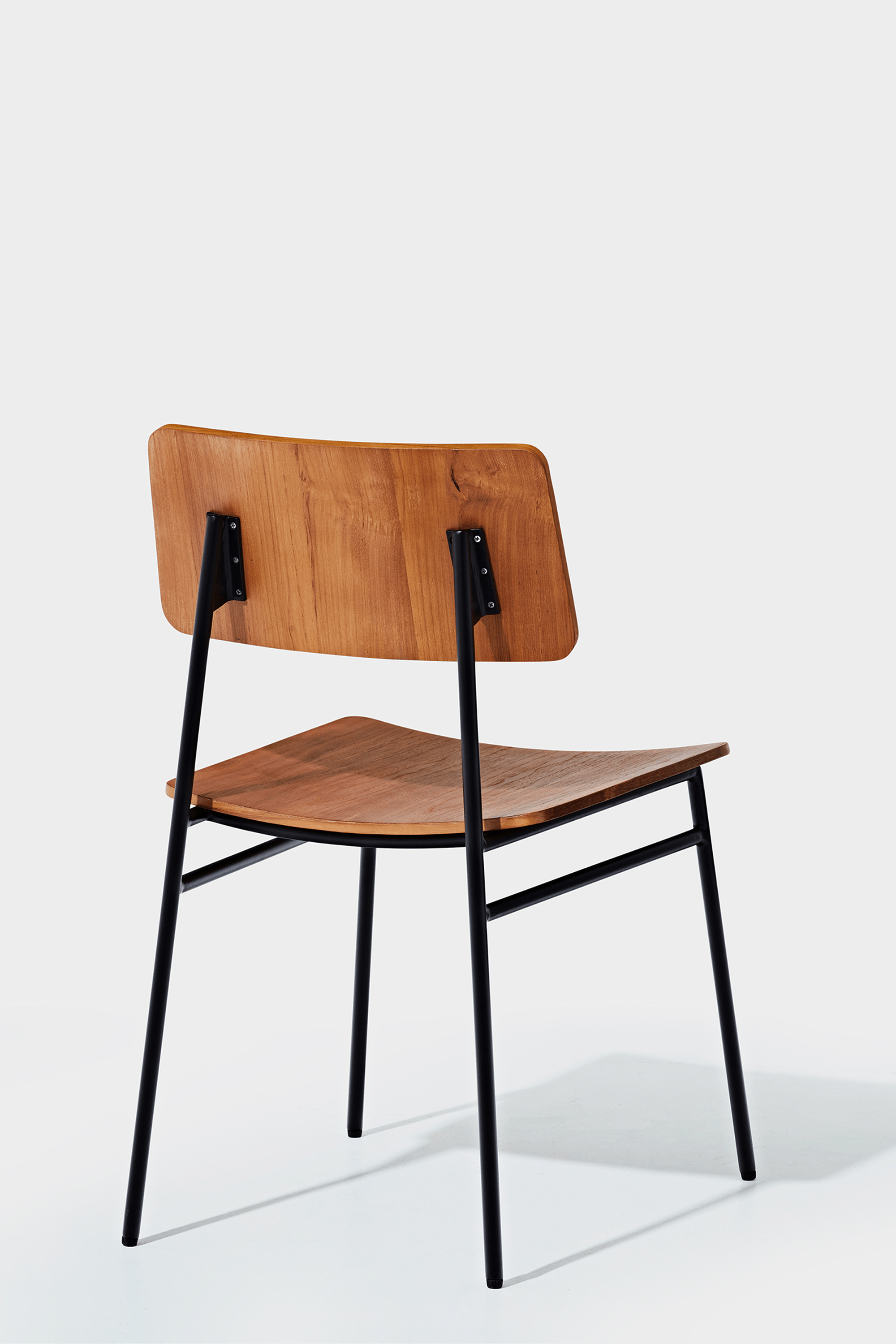 Who said simple can't be fun? I’m Milton, the modern dining chair that combines comfort and toughness. My molded plywood veneer seat and backrest support your posture, while my steel powder-coated frame guarantees durability and style.
