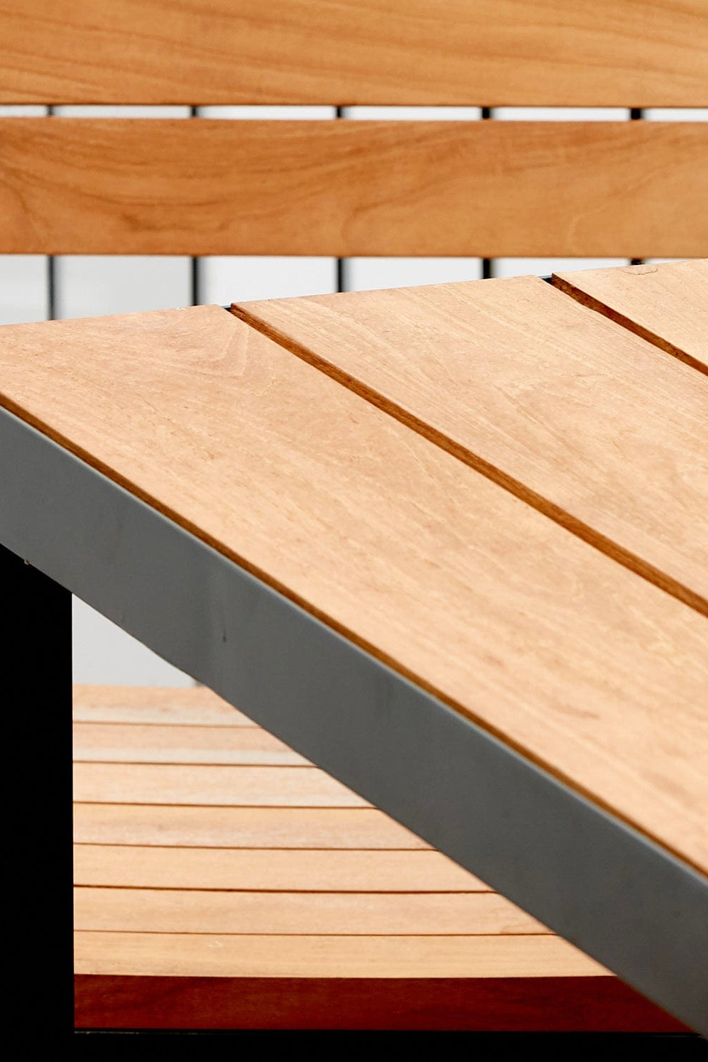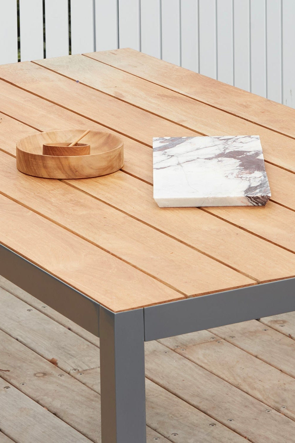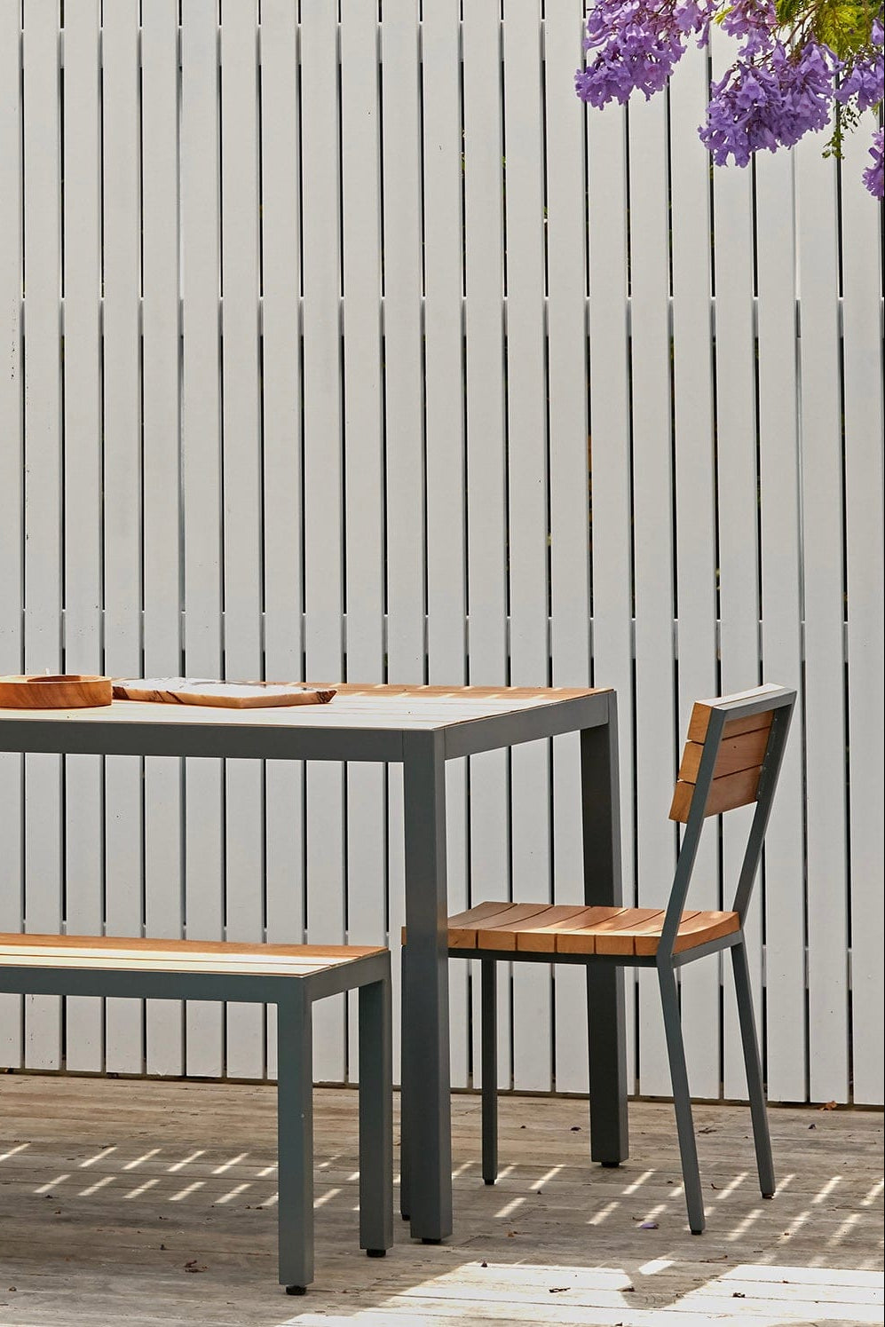 I'm Mimi, the minimalist outdoor dining table designed for your sleek outdoor spaces. I’m all about slim, modern lines with my recessed solid reclaimed teak top, built on a sturdy frame that brings elegance without the bulk. My powder-coated stainless steel legs ensure I can stand up to the elements while adding a refined touch to your outdoor area. Pair me with the Mimi bench and Suzy outdoor chairs for a seamless outdoor dining experience, and you’ll find yourself enjoying more time outdoors with us.