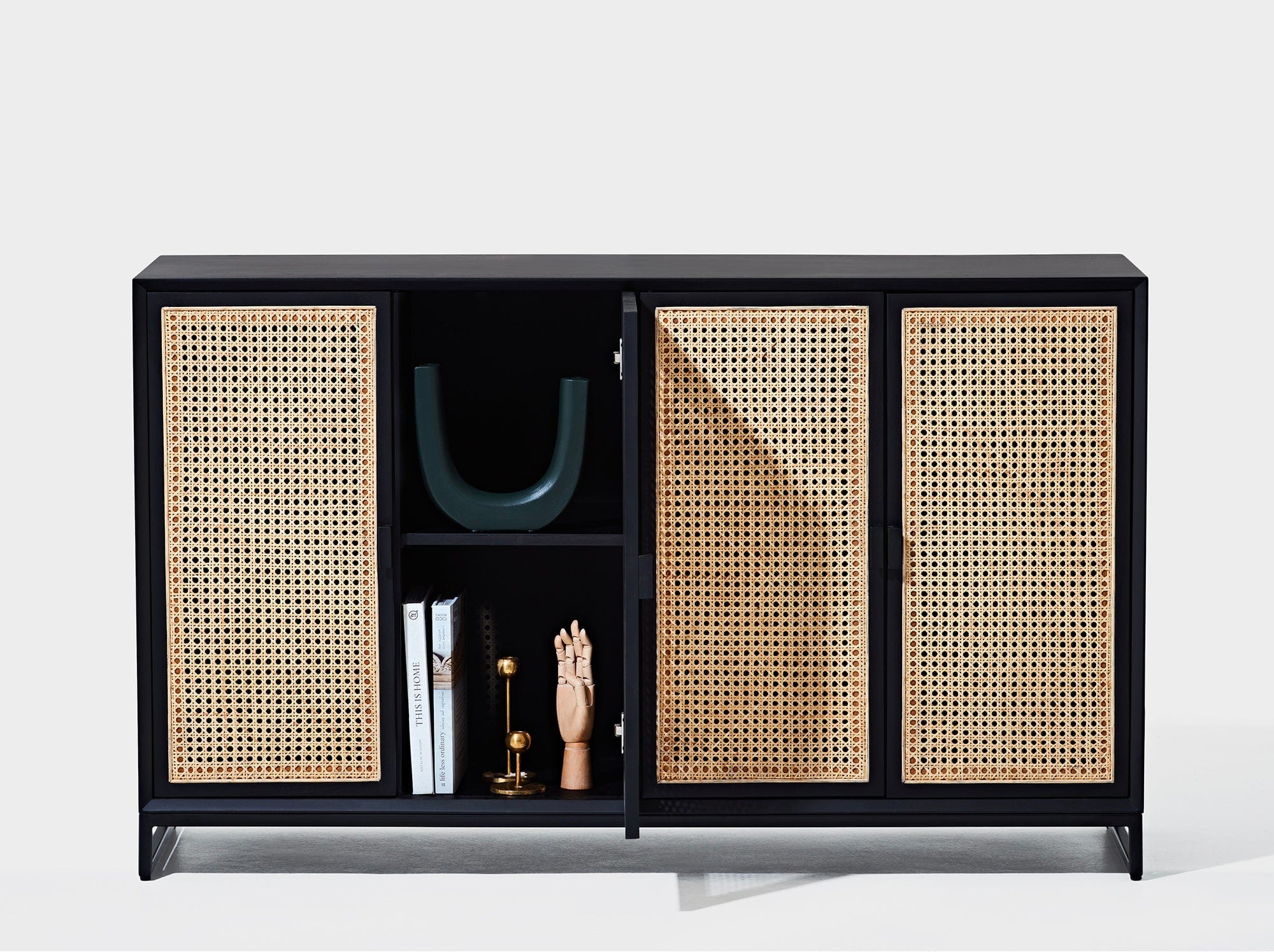 reddie-raw storage cupboard 150W x 45D x 90H *cm / Wood Teak~Black / Metal~Black NCW Rattan Buffet Storage Unit