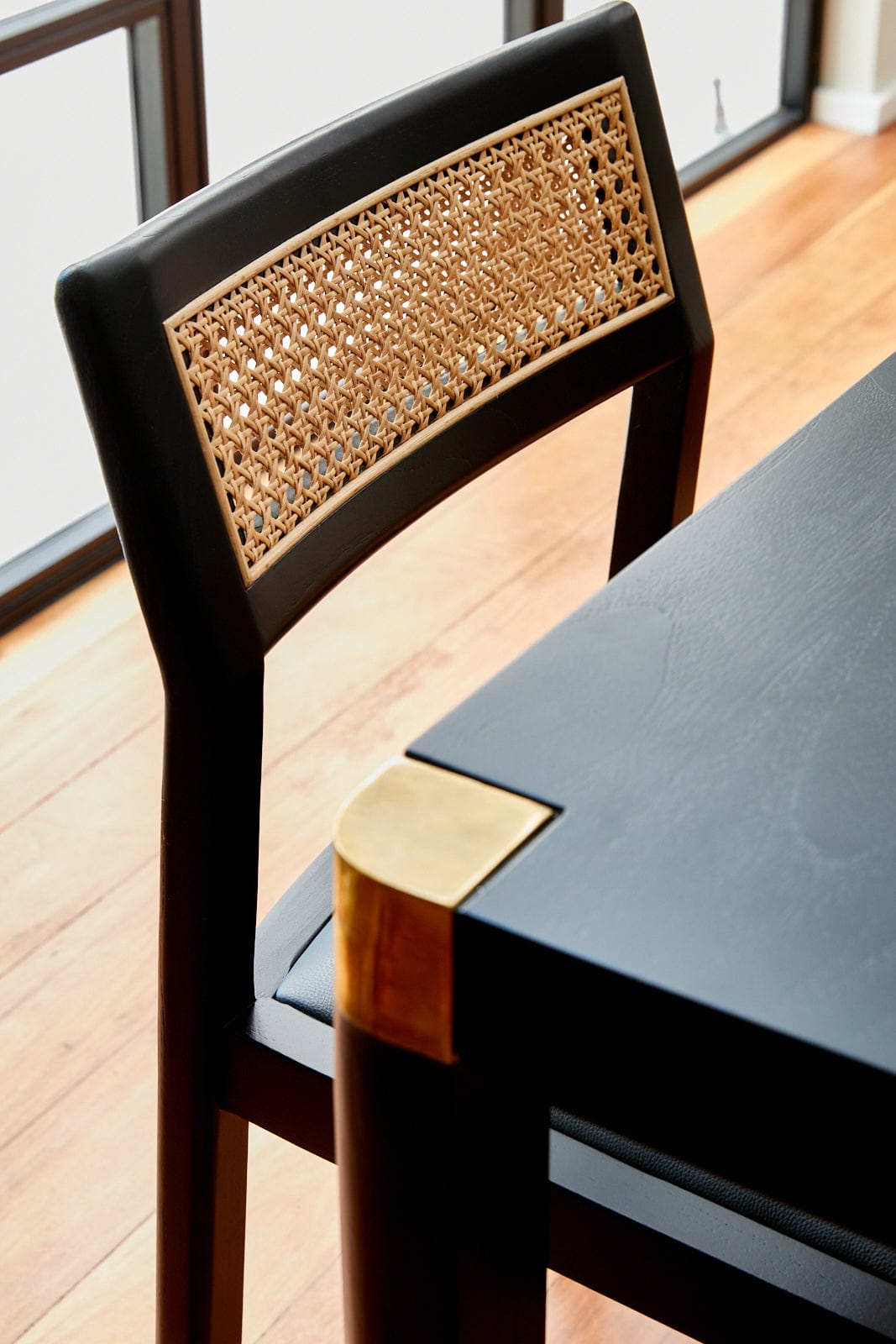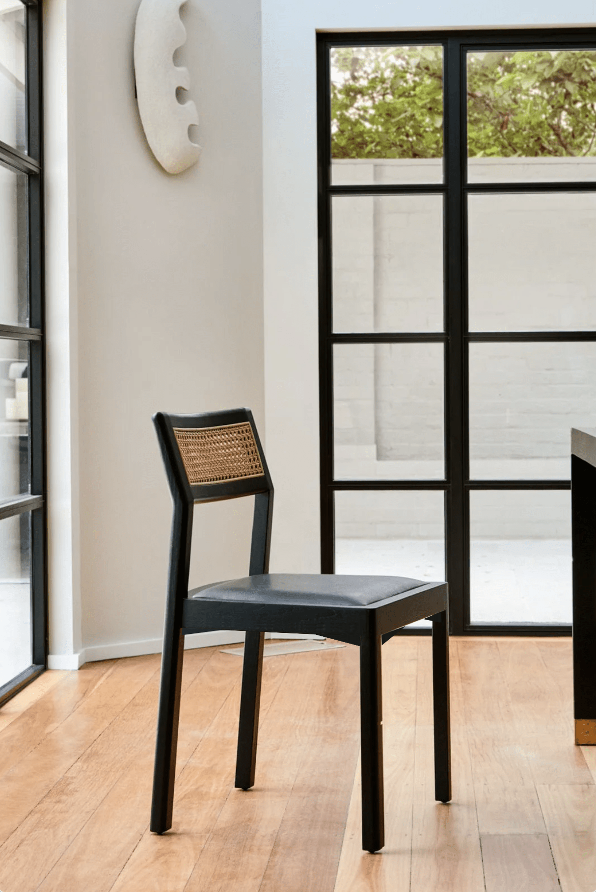 I’m Rita, the rattan dining chair – svelte, slimline, and subtly curved. Framed in solid reclaimed teak wood, I’m topped off with a beautiful rattan backrest. My seat is available in leather or a hand-carved wooden option. Whether you choose a leather seat or a wooden one, I also match perfectly with the Rita Table.