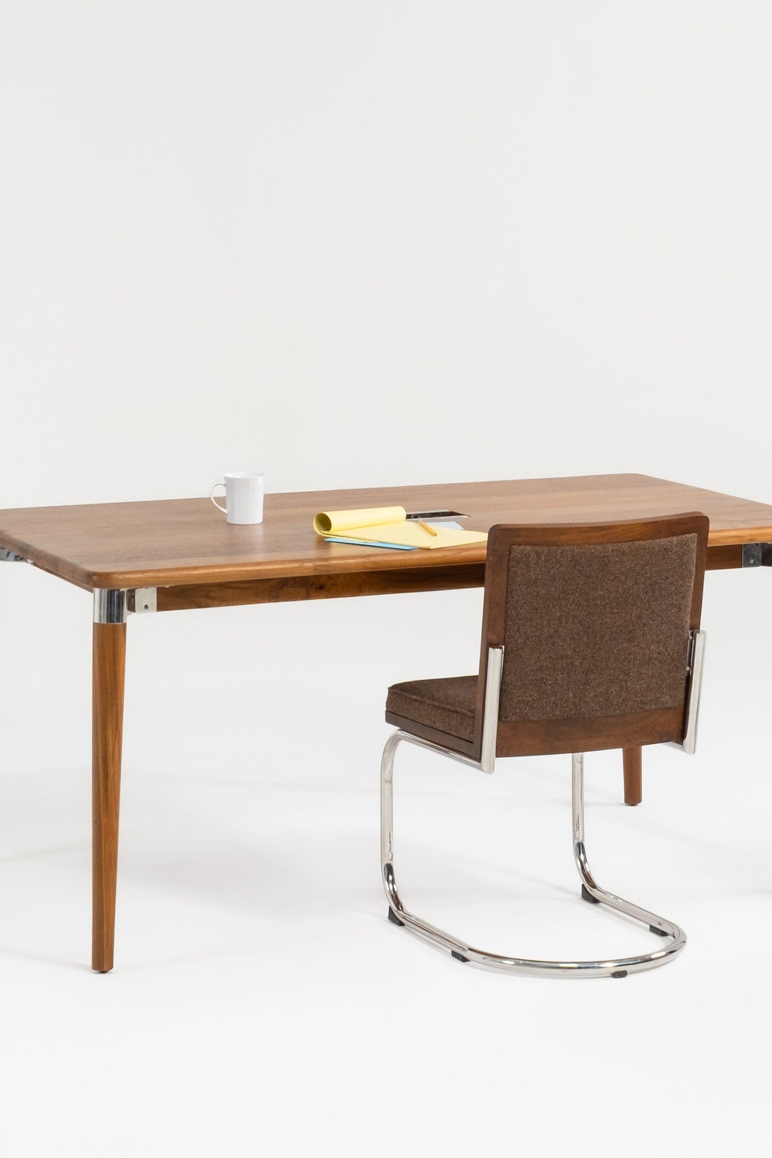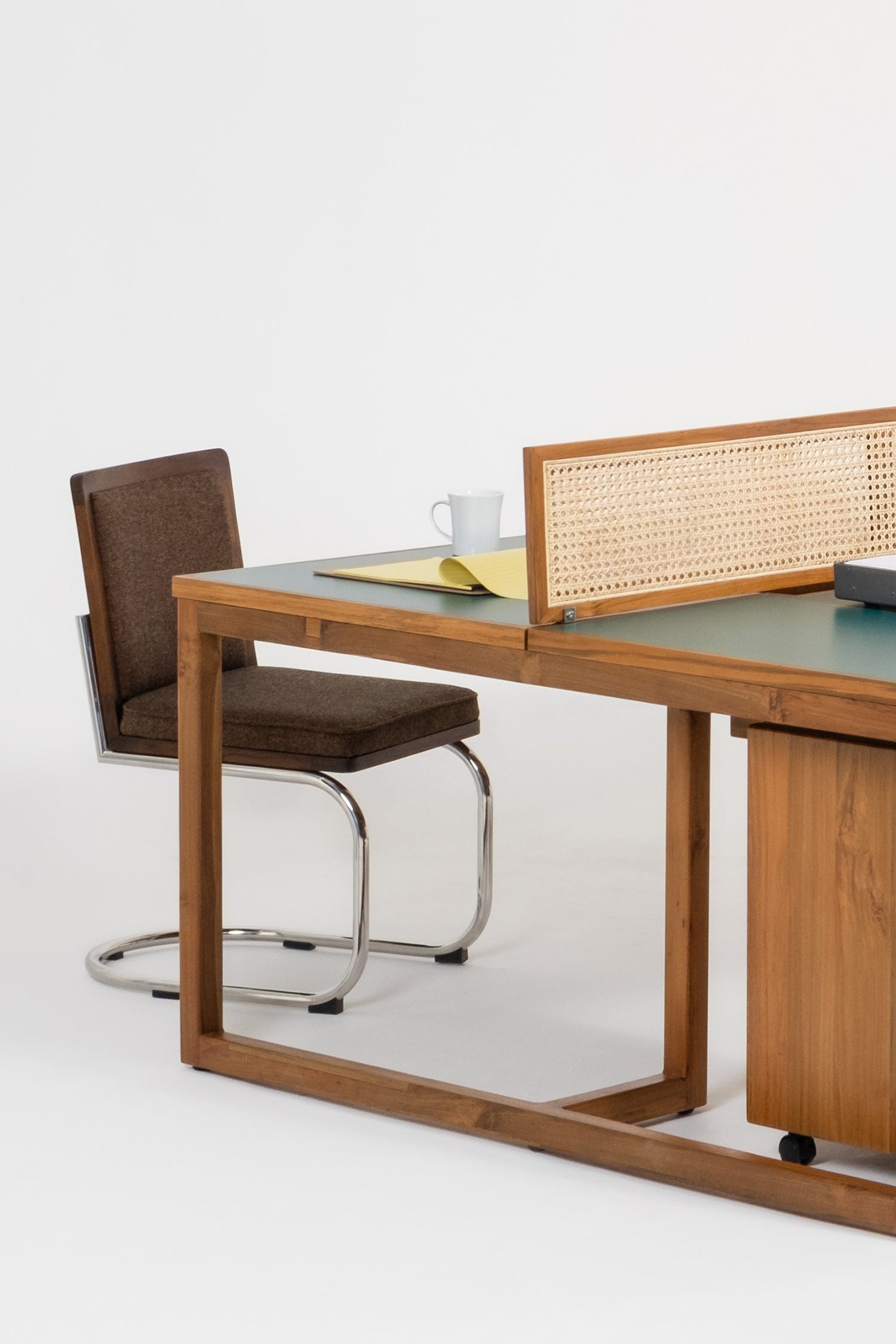 I’m Rosie, where classic materials meet modern design. My cantilevered base gives me a light, airy feel, perfect for use as a dining or desk chair. My solid reclaimed teak frame cradles a double-sided fabric or leather cushion for the seat and back, all gracefully supported by my sleek stainless steel base. This chair is also BIFMA rated for high traffic commercial environment.