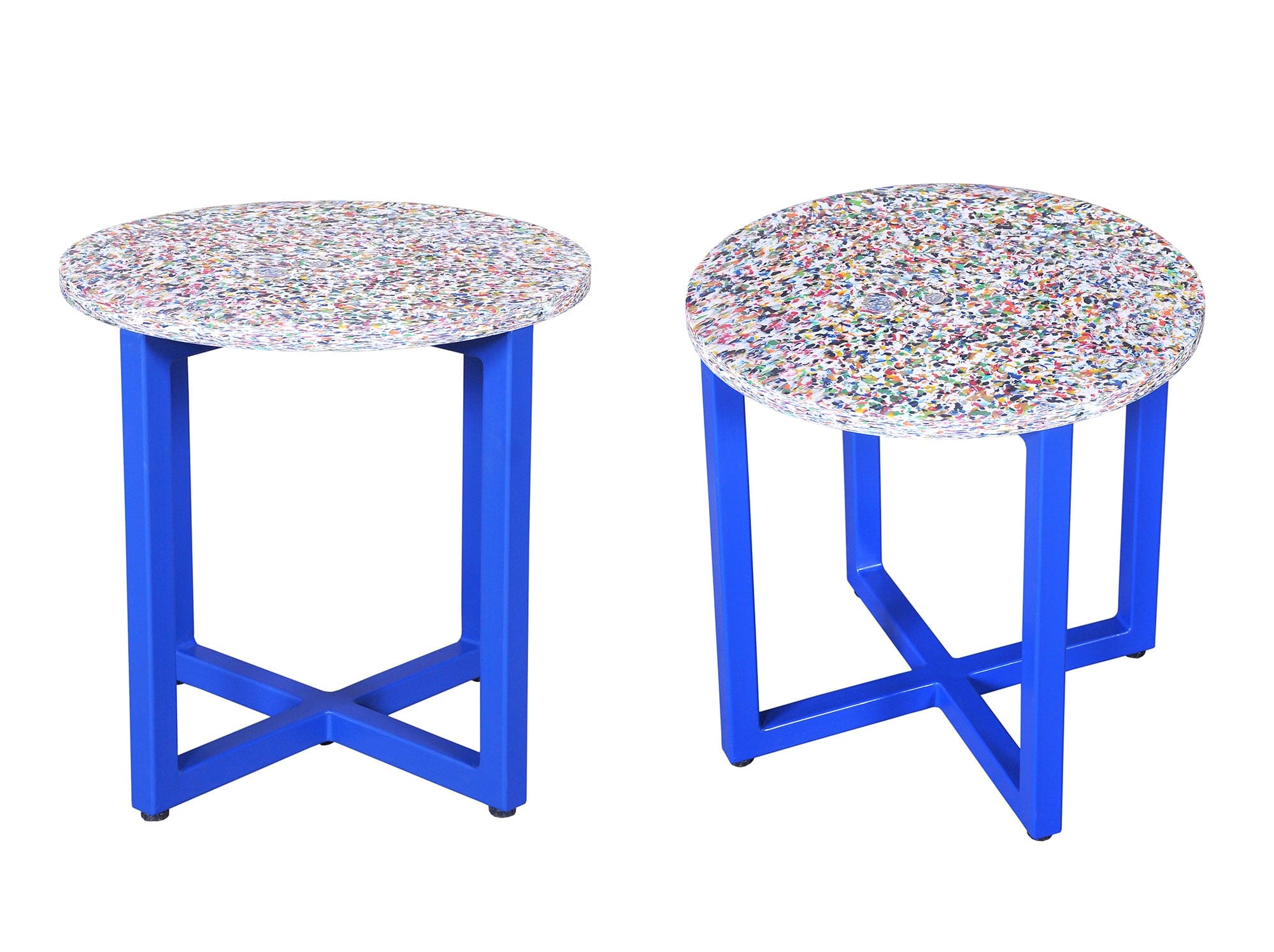 My durable, terrazzo-like material is made from bottle tops sourced through Waste Bank in Indonesia, a local program encouraging the community to collect recyclable goods. The team sort the plastic to match our colorways, which results in an incredible selection of colors – from playful pop culture to timeless classics. I’m then molded into table tops in different shapes and sizes, each tested for strength and quality.