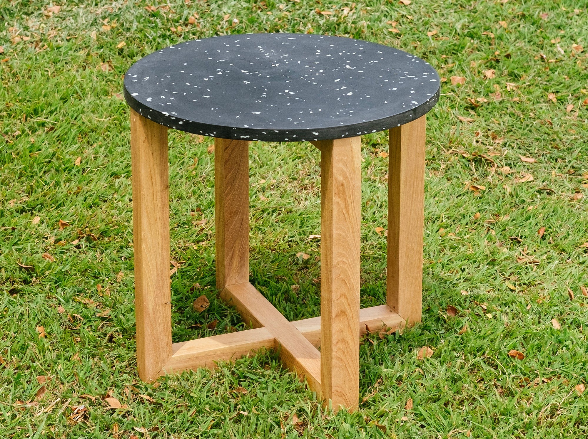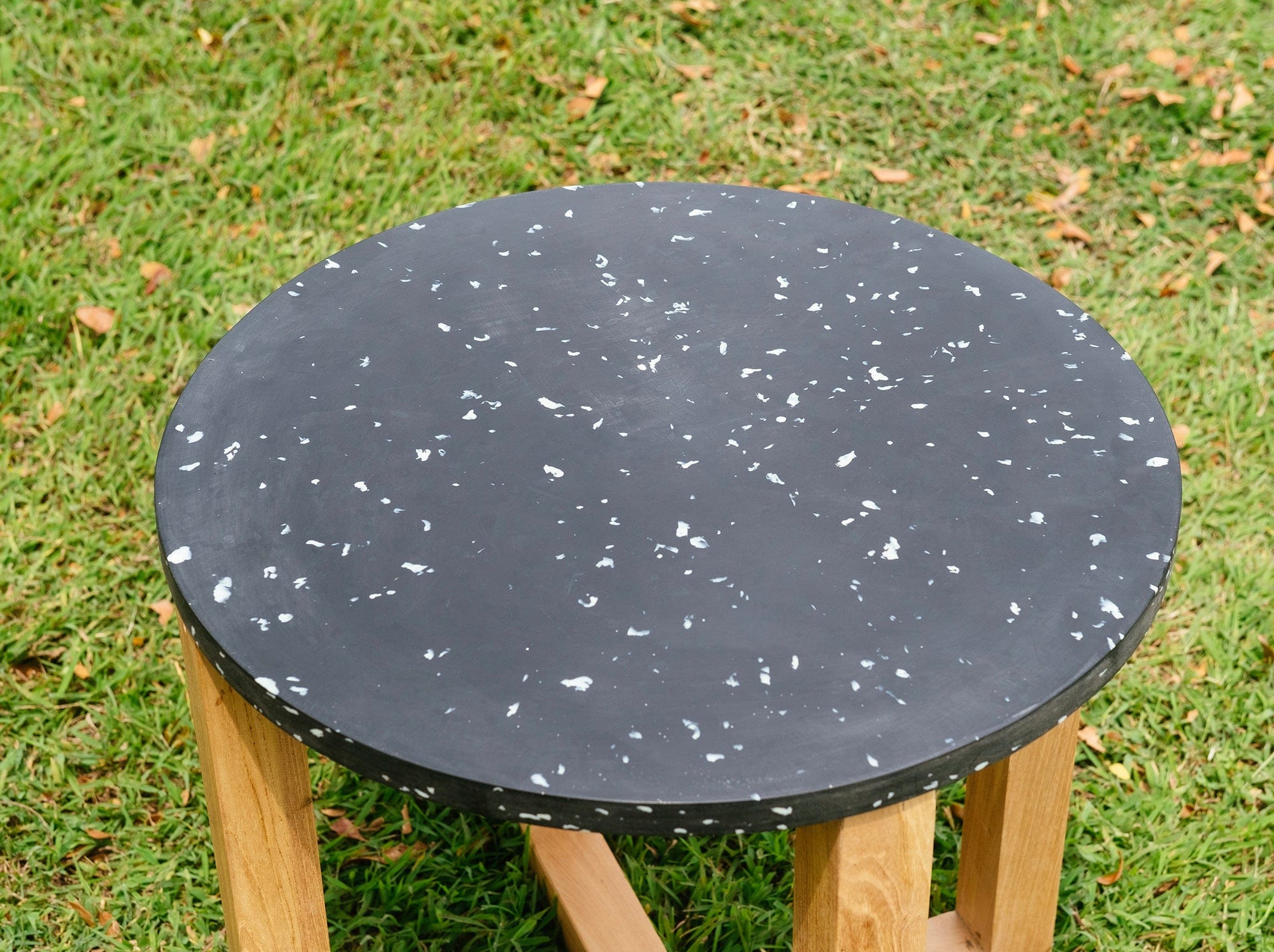 reddie-raw round side table 45dia x 45H *cm / Recycled bottle tops~Coal / Solid Reclaimed Wood~Teak Natural Suzy Side Table Round- Recycled Bottle Tops