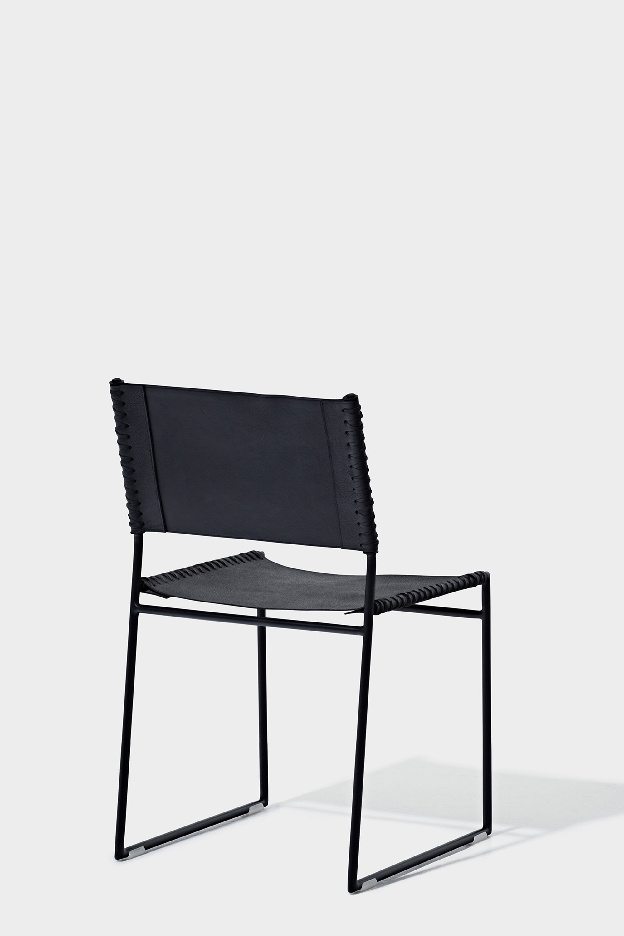 reddie-raw dining chair 47W x 50D x 82H *cm / Leather~Black / Metal~Black Willy Sling Dining Chair