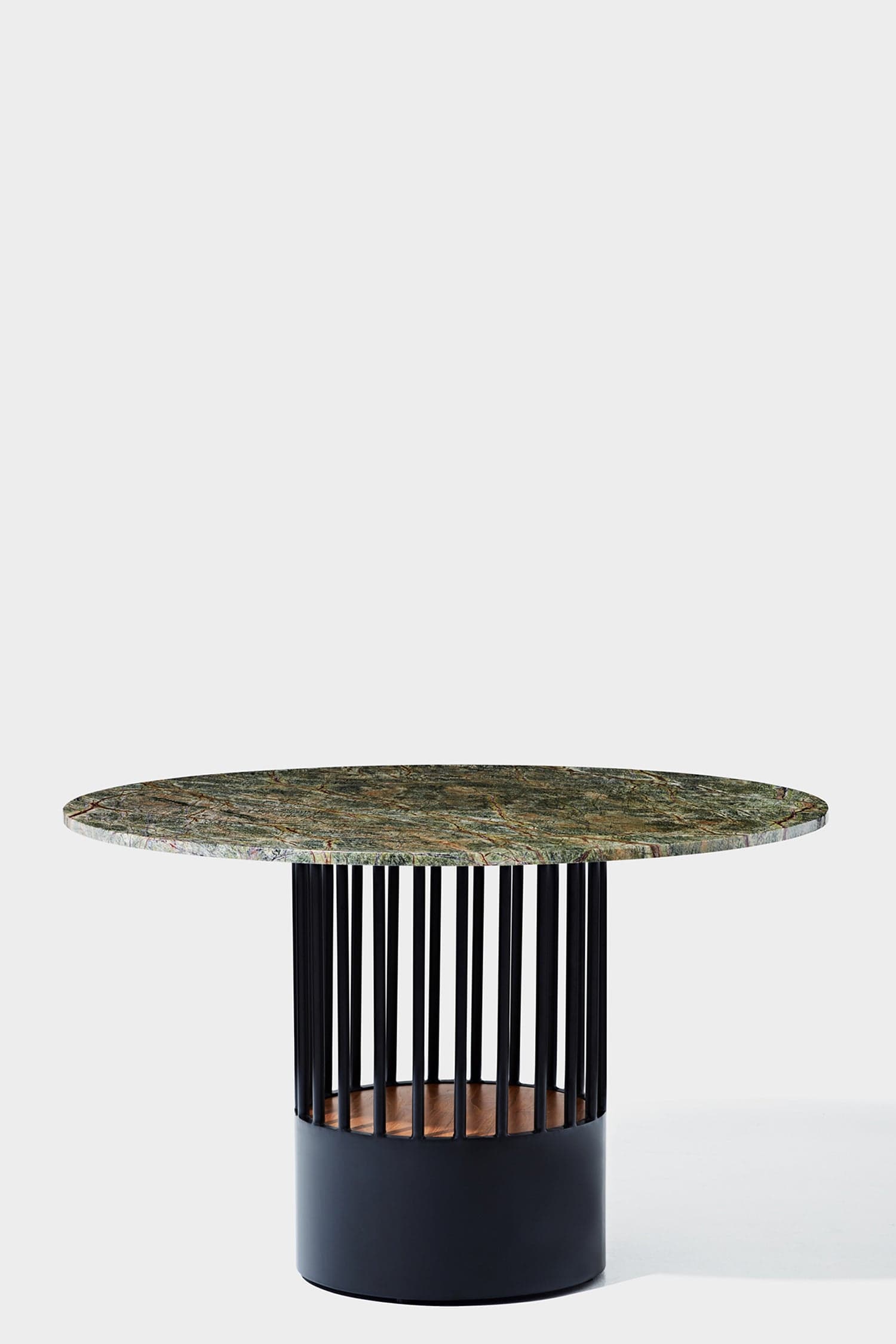 reddie-raw round 120dia x 75H *cm / Stone~White Veined Marble / Metal~Black Willy Cage Table - Marble
